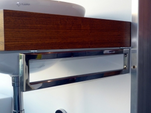 Auch bei der geschlossenen Ausführung ist die Montage der Platte nur durch auflegen und einjustieren, sehr einfach. Die Konsole dient hier gleichzeitig als Handtuchhalter. |